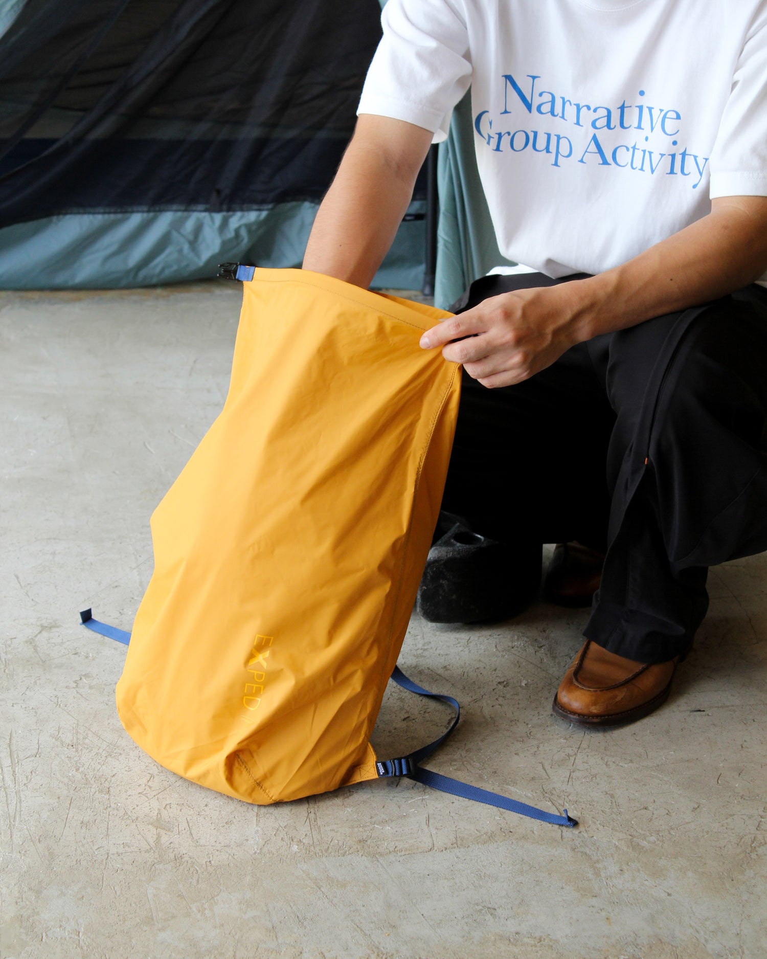 もともとは川遊びやすいむアクティビティ向けに開発されたドライパックですが、シンプルでタフな設計は、登山ハイキング、ウェアやシュラフを圧縮して収納するコンプレッションバック、旅先のサブバック、日常の買い物まで驚くほど幅広いシーンにフィット。