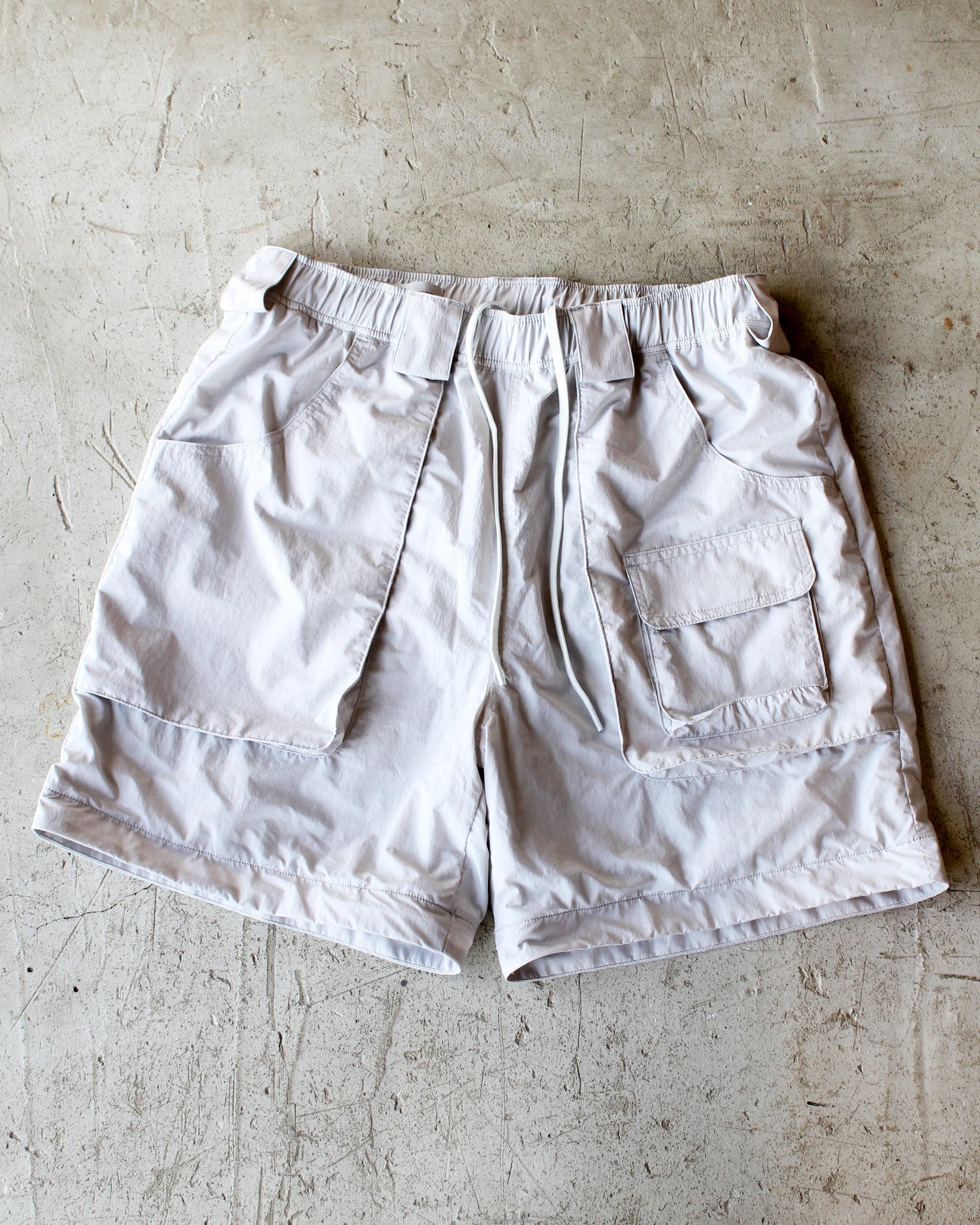 全周ゴムウエストのイージー仕様ながら紐もついているので、微調整や激しい運動にも対応。さらにベルトループも配置し、気分でベルトを締めることも可能です。鍵を下げられるのも嬉しいポイント。