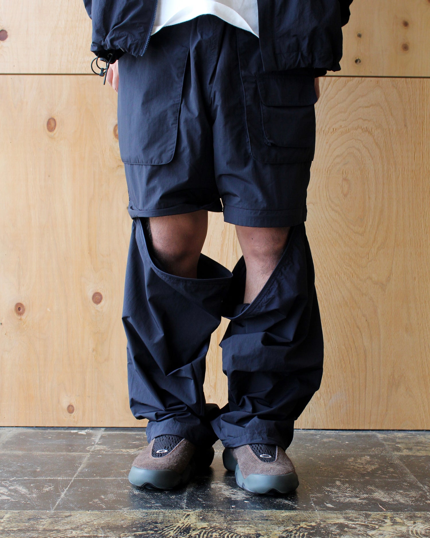 シーンに合わせて左右の袖をファスナーにて取り外すことで、ハーフパンツとしても着用可能な2way仕様。