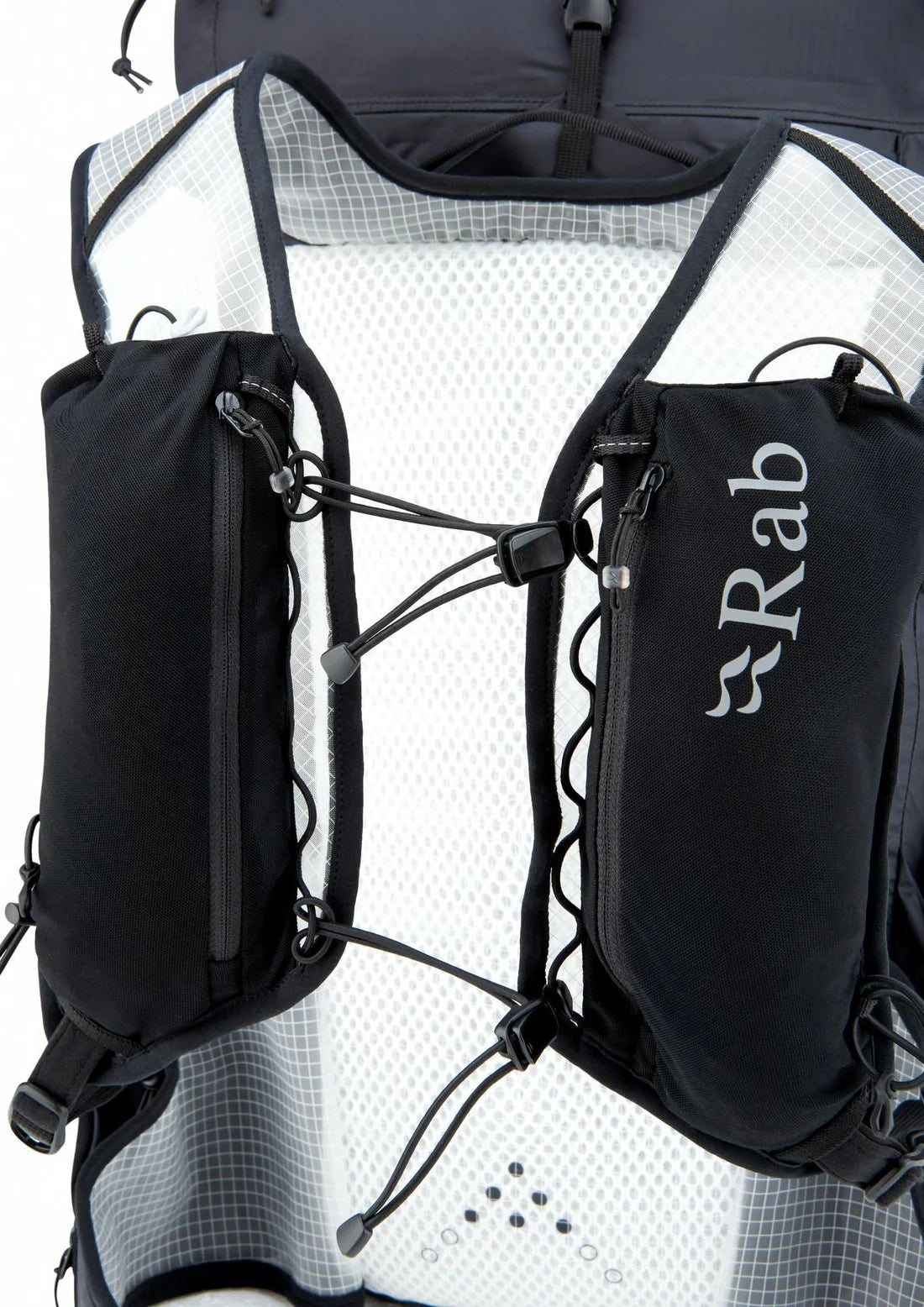 - ハーネスには2つのフラスコポケットと2つのジップポケットを装備